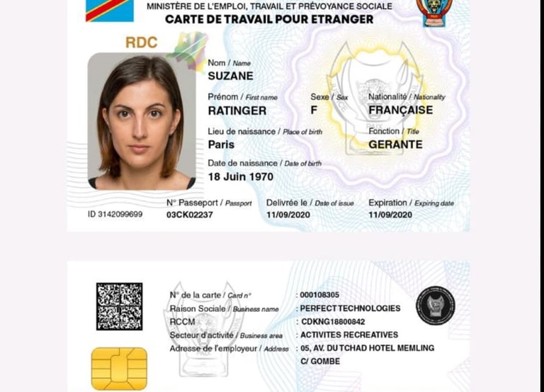 Accompagnement complet des expatriés pour l’obtention de la carte de travail en République Démocratique du Congo.